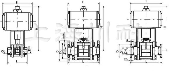 快裝法蘭連接型GUQ氣動真空球閥尺寸: